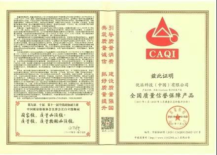 優(yōu)派榮獲2020全國質(zhì)量信譽保障產(chǎn)品