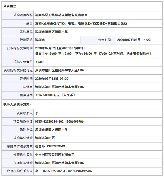采購項目名稱: 福南小學無線移動錄播設備采購項目