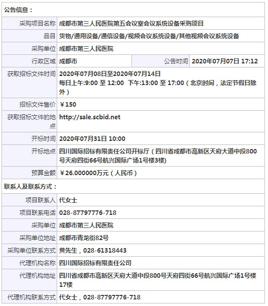 采購項目名稱: 成都市第三人民醫(yī)院第五會議室會議系統(tǒng)設備采購項目