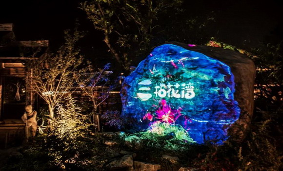 拈花灣的雕塑設(shè)計(jì)理念與Ali and Nino類似,它可以隨著演出的進(jìn)行拆分組合,在一個(gè)整體的大型人體雕塑和多個(gè)獨(dú)立雕塑之間來回變換,不銹鋼雕塑在投影機(jī)的投射下變得流光溢彩,熠熠生輝,畫面上出現(xiàn)的古典文化元素與現(xiàn)代概念雕塑相結(jié)合,共同成就了這場(chǎng)美輪美奐的表演。
