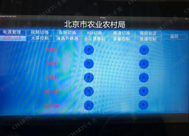 以長圖先進的中控CT-3系統替換掉現老化故障的控制系統,以高配置有線觸摸屏替換老舊的觸摸屏,完美解決北京市農業農村局應急會議室的故障問題。