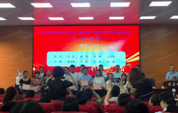 作為本次大賽的重要協辦方,大賽結束后,教體局攜手鴻合對成績優秀的單位和個人進行表彰。為確保此次活動順利開展,鴻合提供了全程設備及技術支持,本次大賽均在配備了鴻合智能交互平板的專業鴻合錄播教室環境內進行。除此之外,賽前鴻合還專門成立了賽課輔導小組,為老師提供貼心的課件制作和輔助服務。