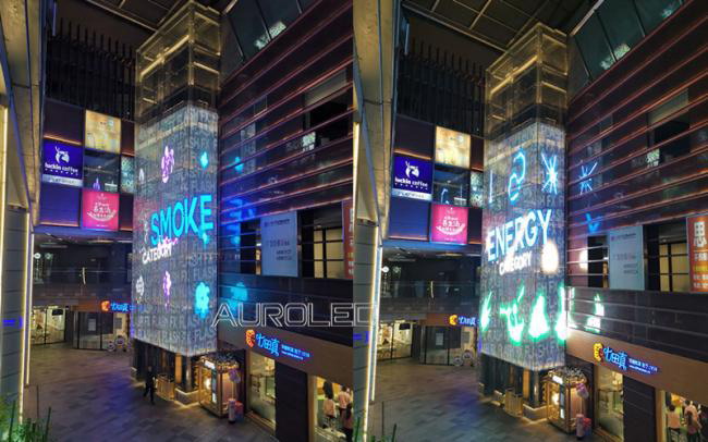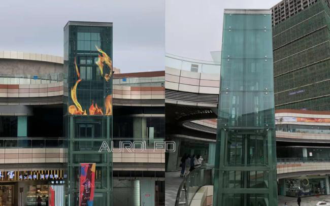 透明屏高清的播放性能,通透的顯示外觀具有極強的視覺沖擊力,不僅起到了為商場引流的作用,也為商場提供一片媒體廣告,增強商場消費氛圍,喚起消費者的購買欲望,給原本“生硬”的觀光電梯賦予了“鮮活”的生命。