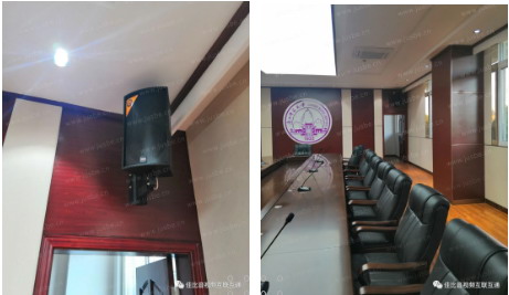 會議室四角各設計1只會議專用揚聲器作為全場擴聲音箱,通過合理安裝、細致調整,使其發揮出最佳擴聲效果。加上音箱優秀語音還原能力,為與會者提供一個清晰自然的語言環境。