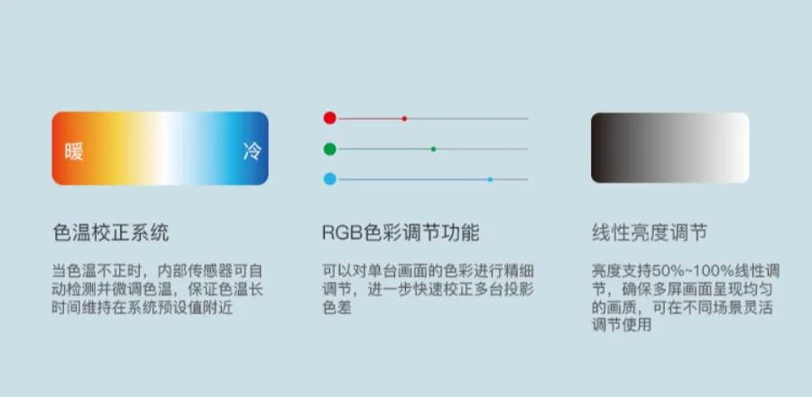 顯然,迪恒投影已經(jīng)考慮到用戶對(duì)圖像靚麗的要求,DU10K在使用新型MCL復(fù)合式激光光源的同時(shí),優(yōu)化了結(jié)構(gòu)設(shè)計(jì),其豐富的色彩管理調(diào)整功,可通過(guò)色彩校正功能、RGB色彩調(diào)節(jié)功能及線性亮度調(diào)節(jié)選,調(diào)整投影畫面的色彩,滿足不同客戶或不同環(huán)境對(duì)色彩的需求。