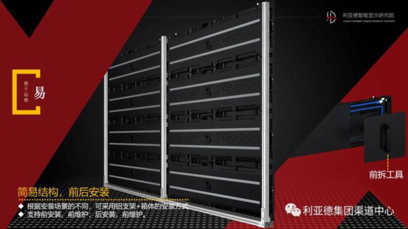 根據安裝場景的不同,可采用鋁支架+箱體的安裝方式 。支持前安裝、前維護;后安裝,前維護。開關電源、接收卡完全前維護,模組和驅動板之間采用排線連接,獨立控制,互不干擾。產品可根據現場空間尺寸選擇屏體安裝方式 (前安裝,后安裝),同時可以根據觀看距離和屏幕分辨率需求選擇不同間距的產品。
