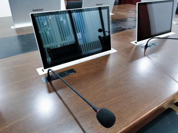 配備嵌入式話筒,不占用會議桌面過多的空間,簡潔大方,使用起來方便。