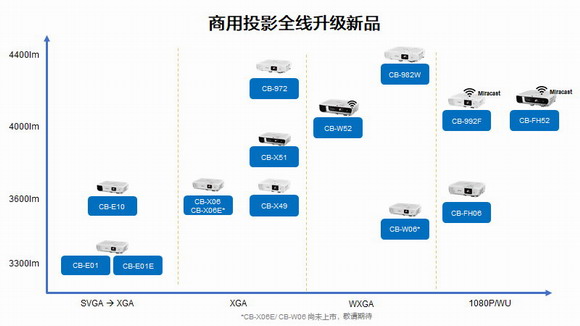 CB-FH52、CB-972、CB-982W、CB-992等多款新品搭載了1.6倍變焦,用戶可以根據投影需求調整畫面大小。