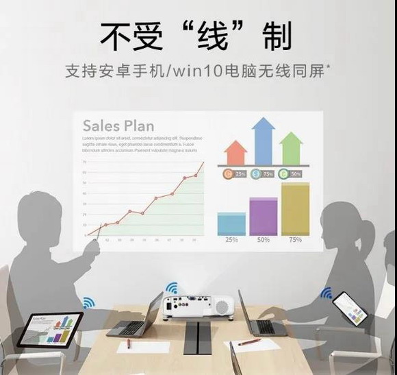 全新CB-FH52和CB-992F投影機還支持無線同屏*5。安卓系統的智能設備及Windows 10及以上系統的電腦,無需下載任何軟件,即可直接無線連接投影機,輕松完成PC和智能設備等的無線投影,開會分享更靈活輕松!