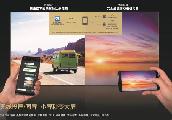 鏡頭位移及梯形校正功能,助你快速獲得清晰滿意的方正大畫面。內置智能系統,更可一鍵投屏,全家老少都能輕松上手,一起觀影其樂融融。