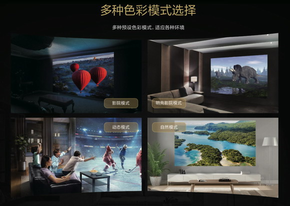 多種模式選擇,可滿足多樣娛樂需求。無論觀影還是游戲,超寬屏都讓你暢爽一步到位。漫反射成像,非直射光源,上網課神器,長時間觀看眼睛更輕松。