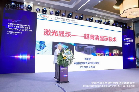 “激光顯示器件分技術委員會的建立,是國家賦予我們的歷史使命”,分標委主任委員許祖彥院士現(xiàn)場介紹說,“在現(xiàn)有顯示技術中,激光顯示采用激光作為顯示光源,可實現(xiàn)超高清、大色域、大尺寸、高觀賞舒適度的高保真視頻圖像再現(xiàn),被視為顯示產業(yè)升級轉型走向超高清顯示時代的最佳技術路線”。