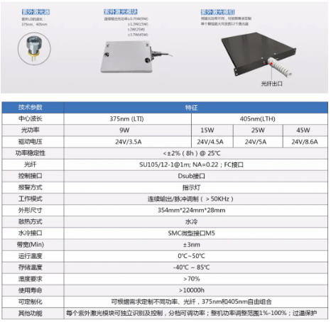 不同于傳統的單顆耦合方案,本產品采用375nm/405nm半導體紫外激光器多顆耦合進入光纖,可實現更高功率的疊加,更高的穩定性,適用于光刻、工業曝光等領域。