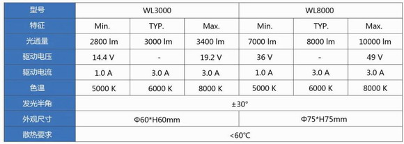 產品充分利用激光的高準直性,增加長焦鏡頭,實現>5km的遠距離白光探照,發散角小至0.8毫弧度。