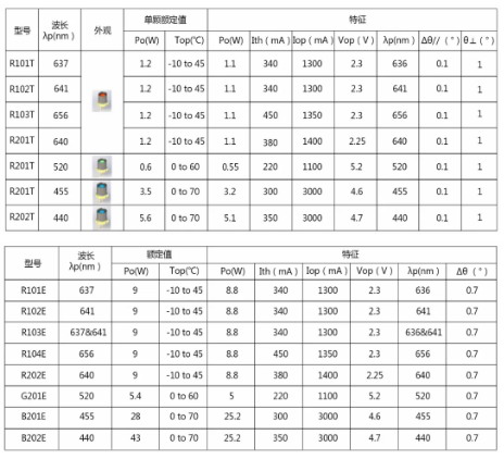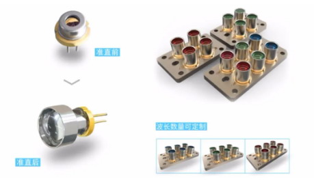 采用RGB半導體激光器,以及光纖耦合或空間耦合技術,實現不同波長混合的白光模塊或單色激光模塊,覆蓋了輸出光功率范圍從2.8W~160W,色彩可自由組合疊加的一系列產品,滿足可見光在顯示、照明、工業等領域的不同需求。