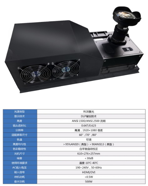 RGB激光光源結合DLP引擎、鏡頭系統,實現不同的亮度,應用于激光電視、背投技術、激光投影等產品,具有高分辨率、廣色域、長壽命的優勢。