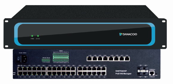 采用Dante數字音頻傳輸協議,結合自主研發的數字音頻處理器為核心向周邊拓展,將傳統的麥克風、接口機、音箱轉變成在Dante傳輸的產品,從而實現整個系統AoIP布局。