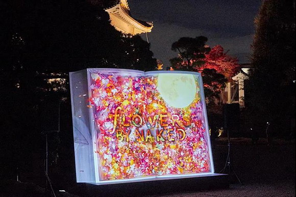 FLOWERS BY NAKED是一個關于花卉藝術的電子數字互動型展項,通過插花藝術、裝飾、投影畫面、游客交互、氣味和音樂帶來五種感官享受。FLOWERS BY NAKED由創(chuàng)意公司NAKED Inc.開發(fā)并在日本國內和海外推廣。首屆展覽于2018年在二條城舉行,主題為“花與傳統”。在二條城被定為世界遺產25周年之際,第二場展覽以“鳳凰”為主題在二條城舉辦。秋天的夜晚,二條城被鮮花和光影環(huán)繞,幻化成一個神奇的世界。