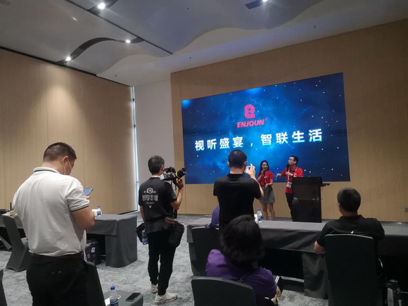 深圳市一禾音視頻科技有限公司英嘉尼事業部總經理歐亮做了視聽盛宴,智聯生活的主題報告,并提出”賽道“的概念,因為疫情的關系,原本市場狹小家庭影院賽道,變得具有更多可能性。英嘉尼家庭影院中的極薄的音響,可以隱形,或與墻面融為一體,高端定制化的家庭影院或可兼具美觀和耐用。