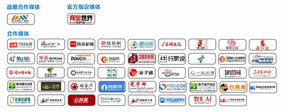 行業(yè)媒體(官方指定媒體:商顯世界;戰(zhàn)略合作媒體:數(shù)字音頻工程網(wǎng);合作媒體:中國(guó)數(shù)字視聽網(wǎng)、慧聰LED網(wǎng)、中國(guó)投影網(wǎng)、中國(guó)觸摸屏網(wǎng)、行家說(shuō)Talk等)