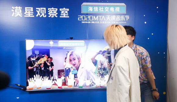 9月4日,在天漠音樂節(jié)上,當(dāng)前來圍觀海信全新一代社交電視S7F的乃萬等音樂人喊出“海信小聚”, S7F不僅快速響應(yīng)乃萬的聲音,全景云臺(tái)攝像頭還在人群中準(zhǔn)確捕獲了聲音,把她穩(wěn)穩(wěn)放在C位。