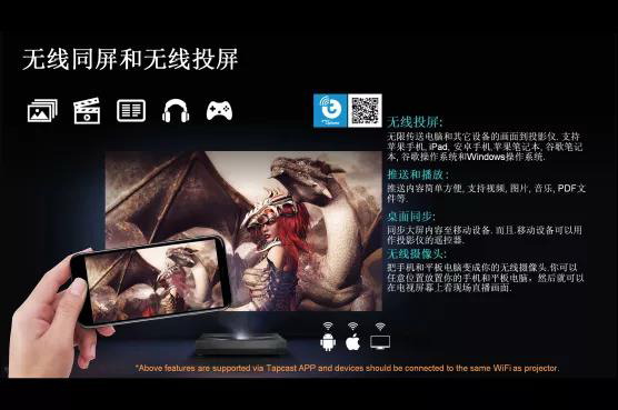 在多媒體、智能社會(huì)和5G時(shí)代,不論辦公、學(xué)習(xí),還是個(gè)人娛樂(lè),信號(hào)源不僅來(lái)源于有線和無(wú)線網(wǎng)絡(luò),更有大量的內(nèi)容來(lái)源于手機(jī)、電腦,甚至無(wú)線攝像機(jī)。因此,一款兼容安卓、蘋果制作系統(tǒng),同時(shí)可實(shí)現(xiàn)無(wú)線投屏、推送和播放、桌面同步、無(wú)線攝像機(jī)功能才是真正為用戶著想的設(shè)備,而奧圖碼“精英”級(jí)激光電視X1-Elite當(dāng)之無(wú)愧地滿足這些要求。