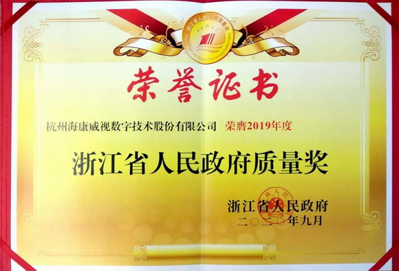 海康威視憑借先進的管理理念、卓越的管理方法,在數字經濟企業中脫穎而出,榮獲2019年度“浙江省政府質量獎”,在全省僅10家獲獎企業中,榜上有名。