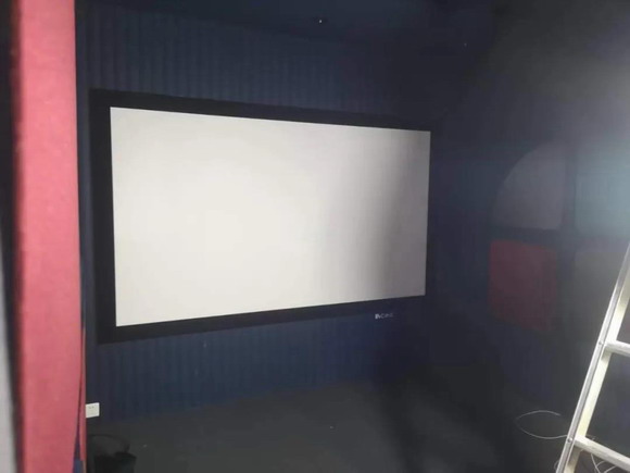 這是我和我的小伙伴們共同搭建的一個簡易的5.1.2全景聲的家庭影院,歡迎大家過來體驗0.4mm微孔透聲幕的投影與透聲玩美融合的效果。