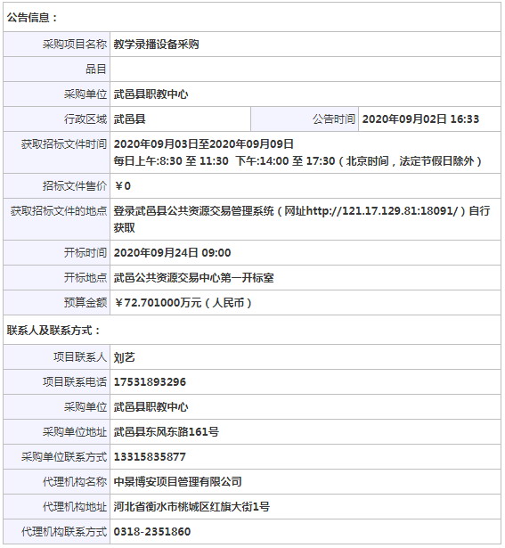 > 武邑縣職教中心教學錄播設備采購公開招標公告