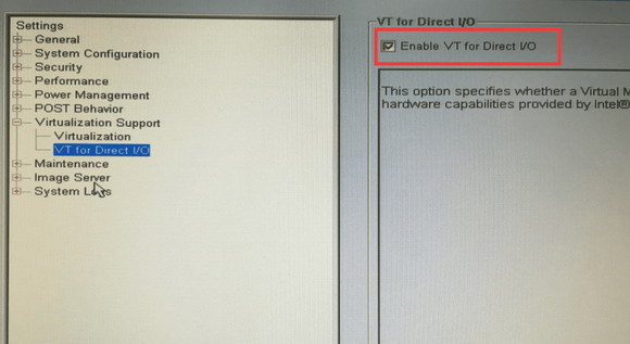 (1)第一步先設置服務器端配置。服務器端上的Virtualization Support 接口必須打開,否則該主機上的PCI設備無法被客戶端訪問,也就添加不了采集卡。Virtualization Support 是在主機BIOS系統里面設置的,要確保Virtualization和VT for Direct I/O選項都被打開。如圖1和圖2所示。