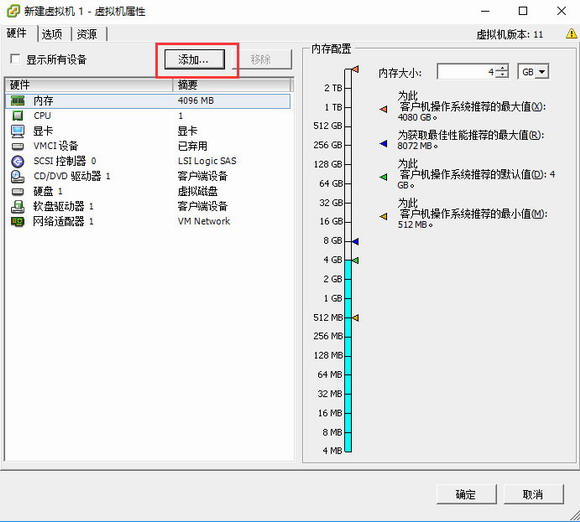 (5)右擊所創建的虛擬機客戶端,點擊編輯設置>添加,在添加設備的界面里面選中PCI設備,接著選中采集卡。點擊確定后再打開編輯設置界面就能看到采集卡已經添加成功,具體可參見圖6-圖9。