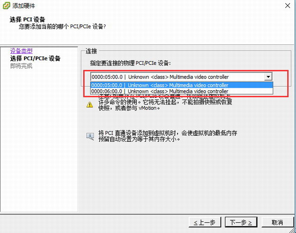 2.在虛擬機上添加PCIe采集卡,采集卡需要安裝在服務器端。