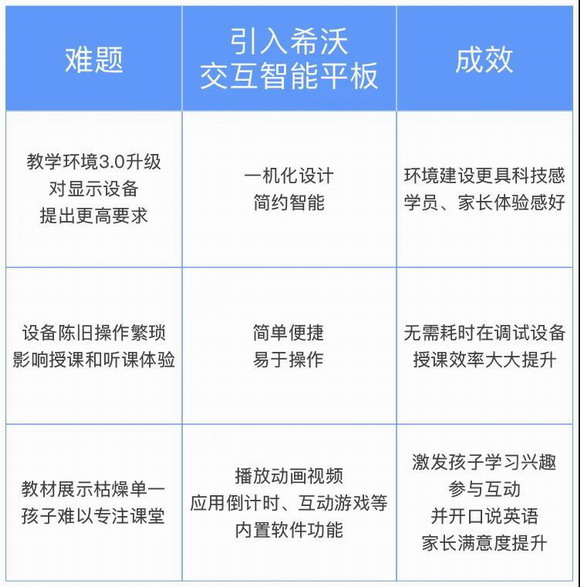 自2020年初起,愛貝英語新校區統一進行環境建設3.0升級,每間教室都統一安上了希沃交互智能平板,讓機構教學環境迎來“新面貌”和新的用戶認知。