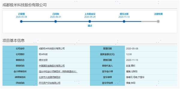 上交所官網顯示,極米科技科創板IPO在2020年5月8日獲得受理,之后在6月1日進入已問詢狀態,在當年9月29日公司上會獲得通過。2020年11月13日,極米科技向證監會提交注冊申請,但至今尚未注冊生效。