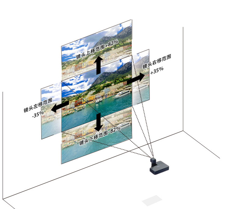 在超短焦的投影機中,具有同級別最大的鏡頭位移量