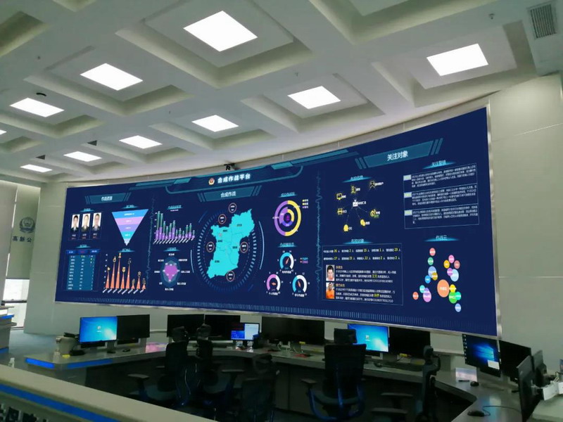 此次聯建光電為長沙高新區公安分局量身定制的智慧公安顯示應用解決方案,采用的是P1.5明星小間距系列,產品有低亮高灰、高刷新率、超靜音、低溫運行、穩定運行不黑屏等獨特優勢,分辨率高達9216×2592,可實現穩定流暢、清晰地展現多場景畫面信息。此外,該顯示方案結合智慧化管理系統可更精準、更快速地實現公安大數據的一屏顯示,清晰直觀集中展現長沙高新區公安分局的警情態勢、工作對象、警情處置等多個可視化業務場景,有助決策者全面掌握公安系統運作狀態以及迅速做出決策,為長沙智慧公安建設貢獻重要力量。
