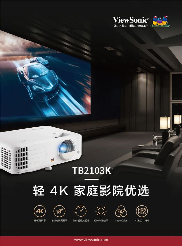 優派4K家用投影新品TB2103K目前已正式上市,官方零售價15999元。