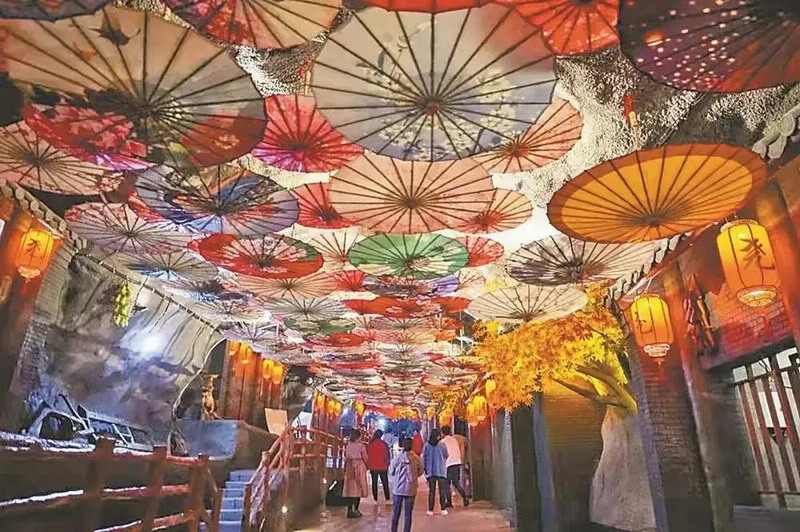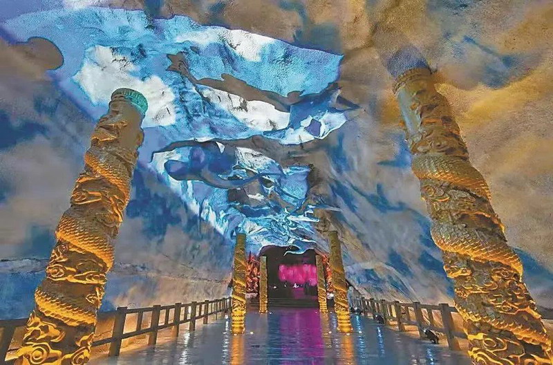 在堯治河三界洞天景區,“時光隧道”運用高科技光電影像技術,帶領游客暢游神話世界。