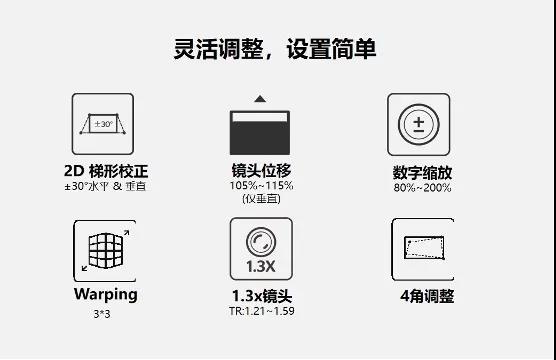 奧圖碼UHZ716高亮智能激光投影機對投影尺寸的兼容性極高,2.68米可以投射出100英寸巨幕,5.36米投影距離則可以實現200英寸巨幕。為了讓用戶更便捷地調整投影畫面,這款投影機擁有4角調整、2D梯形校正、鏡頭位移等一系列優化功能,在空間受限的環境里,依然可以呈現方方正正不畸變不變形的投影效果。