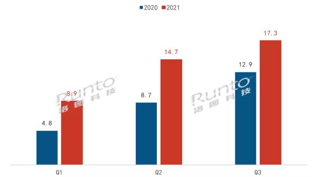 2021年前三季度中國大陸激光投影市場出貨量及變化