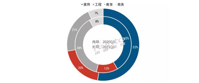 2021年第三季度中國大陸激光投影分場景出貨量結構