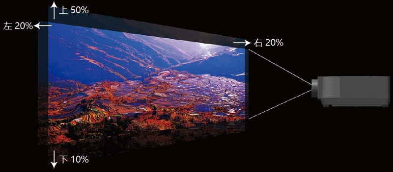 兩款工程投影機均支持360°全方位投影,盡管機器有較大的體積和重量,但精密牢固的結構設計允許360°自由安裝投影,用戶可以輕松調整投影畫面的位置;內置了邊緣融合功能,實現大畫面無縫拼接,拼接融合功能包含畫面切割、幾何校正、邊緣融合;搭載鏡頭移動功能,可以將畫面無損平移,為實現拼接和融合提供便利,用戶可輕松地調整投影圖像的位置,其中垂直方向最大調節范圍為50%(向上)、10%(向下),水平方向最大調節范圍為+/-20%,全面滿足用戶的差異化需求。