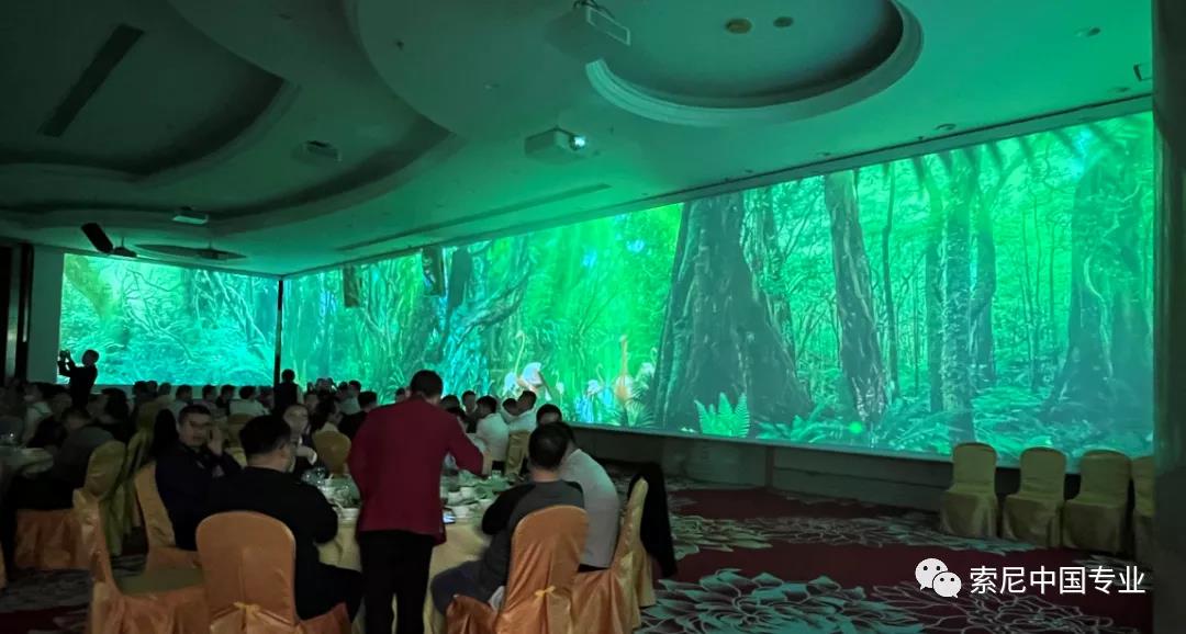 在會議廳改造中,配合酒店先進的沉浸式宴會廳理念,廣州亞洲國際大酒店選用了索尼F系列工程投影機作為改造的重點設備。會議現場安裝了VPL-F540HZ共計12臺,打造出沉浸式宴會廳的氛圍。在座其他酒店用戶對沉浸式宴會廳的效果表示驚嘆,也和現場工作人員做了深入交流。