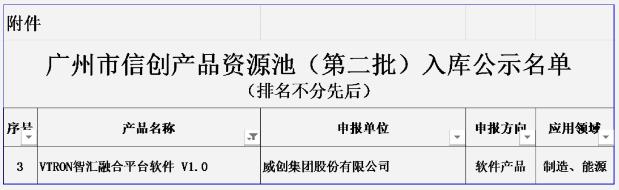 近日廣州市工業和信息化局對《廣州市工業和信息化局關于廣州市信息技術應用創新產品資源池(第二批)入庫名單》進行了公示,威創憑借VTRON智匯融合平臺V1.0成功入圍此次資源池名單。