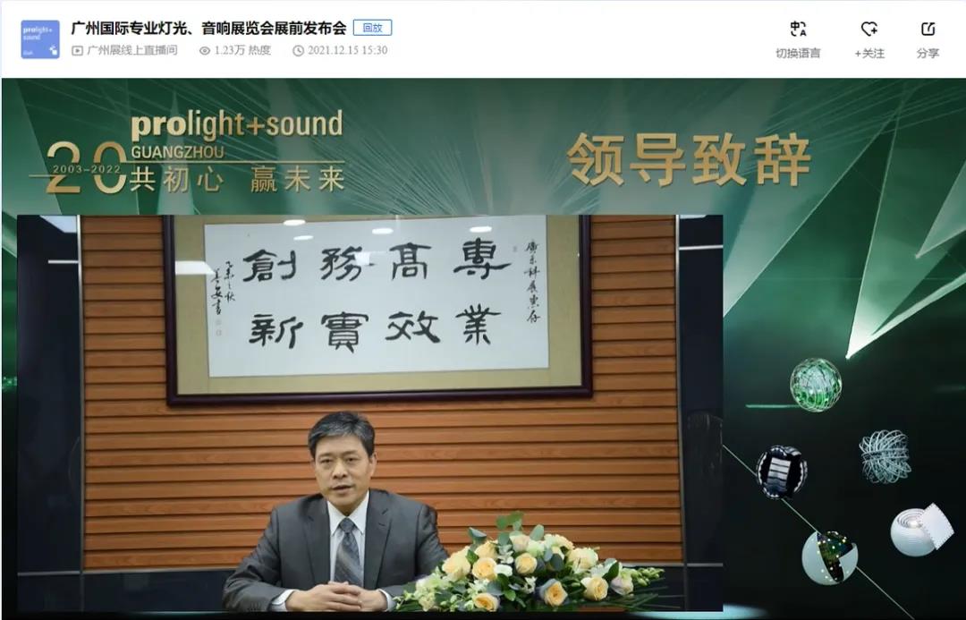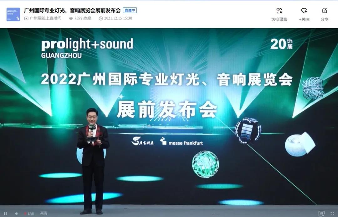 作為業內最具影響力的展會,第二十屆廣州國際專業燈光、音響展覽會(下稱“廣州展”)將于2022年2月25 – 28日在中國進出口商品交易會展館A、B區盛大舉行。12月15日下午,2022廣州展展前發布會圓滿召開,主辦單位公布了本屆展會的一系列精彩亮點,攜手廣大業界同仁在展會二十周年的全新征程上乘風破浪,勉力前行。