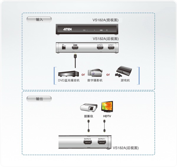 VS182A HDMI影音分配器對于需要將高清視頻分辨率數字信號復制輸出到2臺顯示設備的用戶而言,是一套非常理想的解決方案。VS182A可支持具備HDMI功能的設備,如DVD播放器、衛星機頂盒及所有HDMI顯示器。