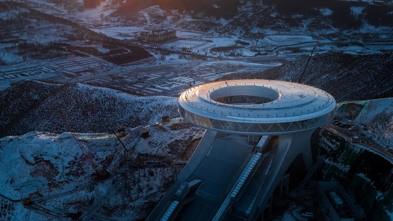 國家跳臺滑雪中心是我國首座跳臺滑雪場,同時也是北京2022年冬奧會的主要比賽場館之一。其頂部最高點與地面落差達160多米,是張家口賽區(qū)冬奧會場館群建設中工程量最大、技術難度最高的競賽場館。國家跳臺滑雪中心主要由頂峰俱樂部、競賽區(qū)及看臺組成,它的主體建筑靈感來自于中國傳統(tǒng)飾物“如意”,由于其佇立于覆滿白雪的山巔,因此也被形象地稱為“雪如意”。