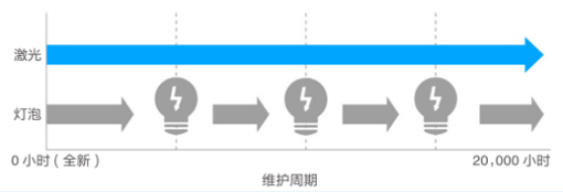 課堂中投影設備使用頻率高且單次使用時間較長,投影機的后續維護成本也是采購投影機時的重要考量因素。愛普生教育激光投影機所使用的激光光源,光源壽命達到20,000小時*4,后續基本無須更換光源,維護省心簡單。