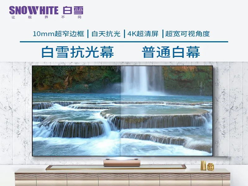 白雪長焦抗光屏幕采用特殊光學成像原理,把圖像光線水平與垂直均勻分布,使屏幕水平及垂直較大角度區域內觀看者獲得較高亮度、高對比度、高清晰度的圖像。白雪長焦抗光屏幕適用于中、低亮度投影機實現高端投影畫質的最佳選擇,它適用于個人影視、會議室、互動視頻、游戲、監控等高品質顯示應用。