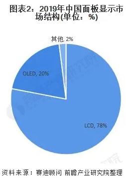 目前,面板市場主流的兩大產品分別為LCD和OLED,LCD在價格、使用壽命上優于OLED,而OLED則在黑度、對比度等優于LCD。在中國,2019年LCD占據了78%左右的市場份額,而OLED則占20%左右。